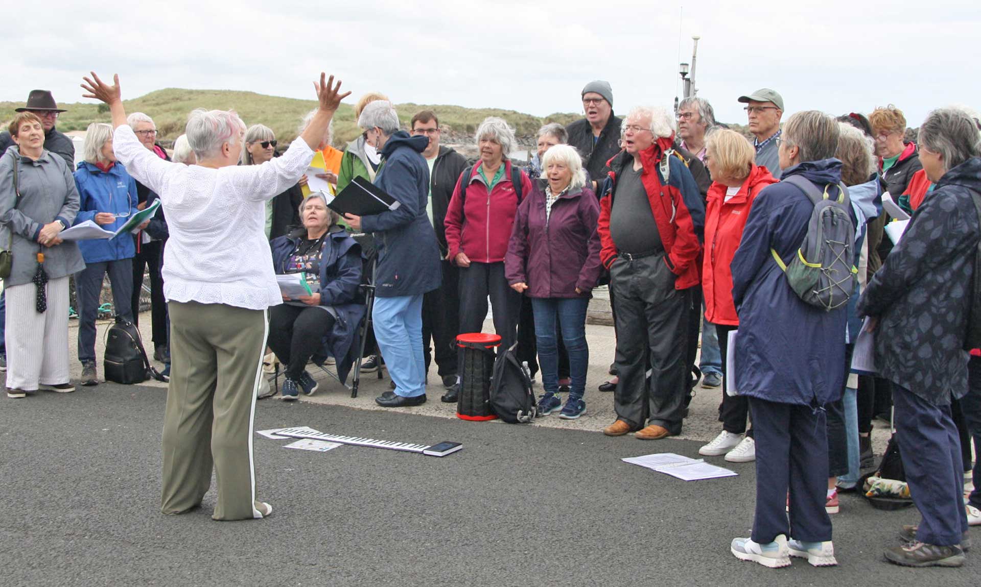 Harbour Lights – Amble Community Choir is 15 years old. Started in 2010 by leader Flora Smith, in conjunction with the charity 20,000 Voices. Over the years it has blossomed and developed, growing from a small group into the choir of over 55 people.